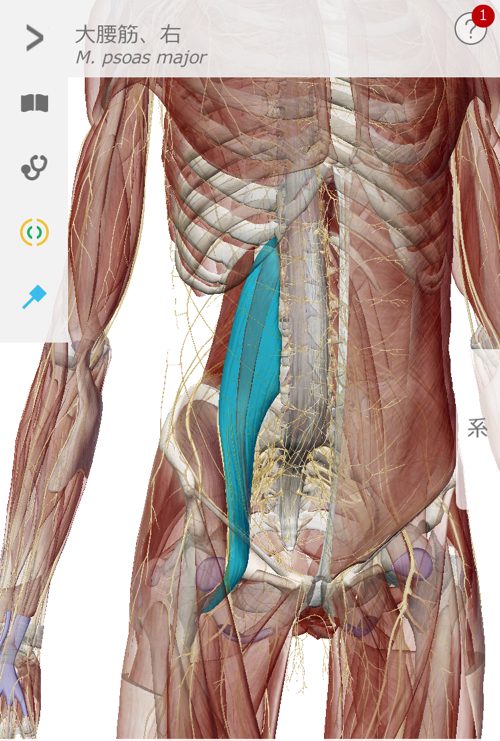 お腹の周りで一番硬直が強かったのはこの大腰筋。