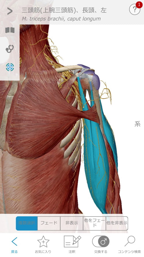 今回の施術ではまずこの肩甲骨から繋がる筋肉。