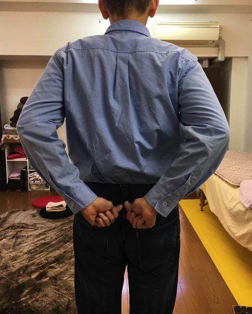 こんな感じで猫背になりながら