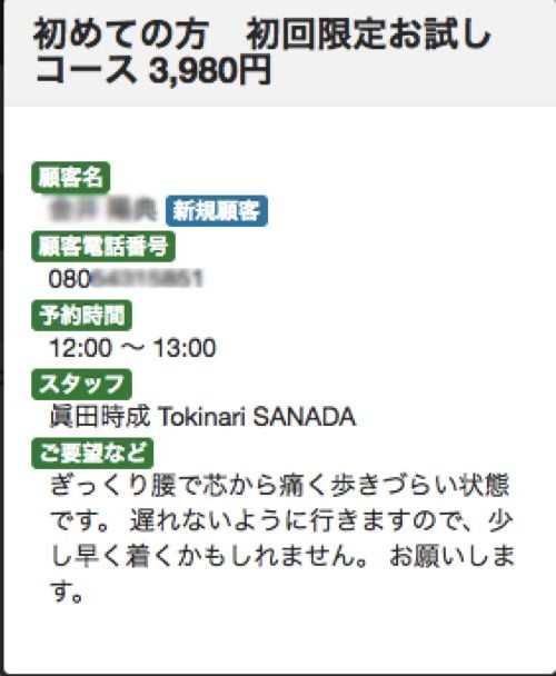 2回先までご予約を頂いているので、しっかりと施術させて頂きたいと思います。