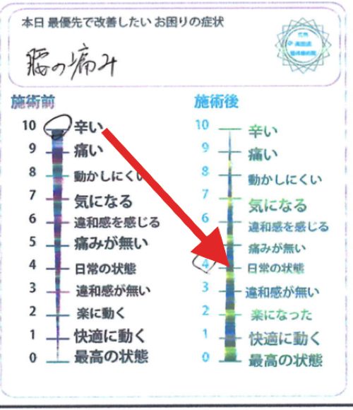 施術前:10・ 辛い → 施術後: 4 ・日常の状態