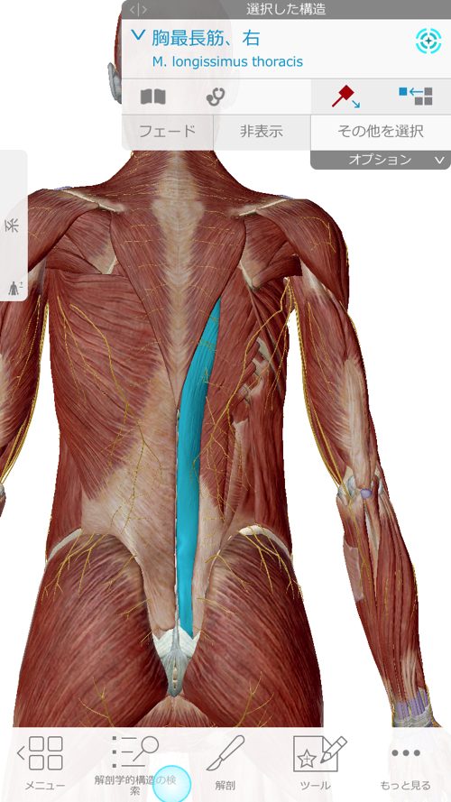 背中から腰まで繋がっています。