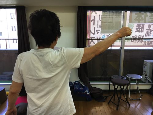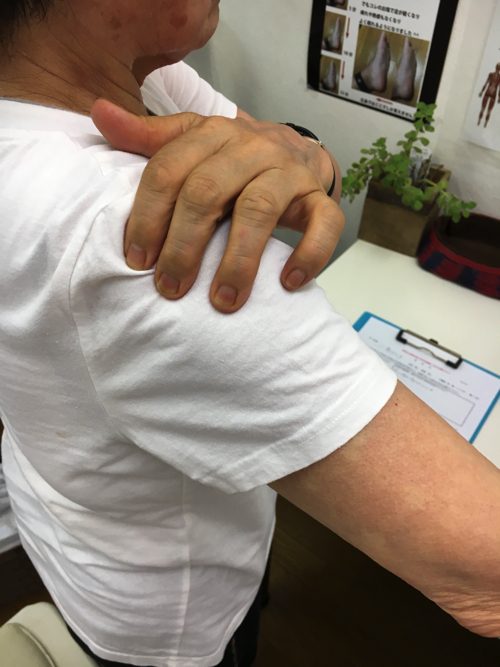 今回は、腕を横から上げる際に出る肩の痛みでお困りでした。